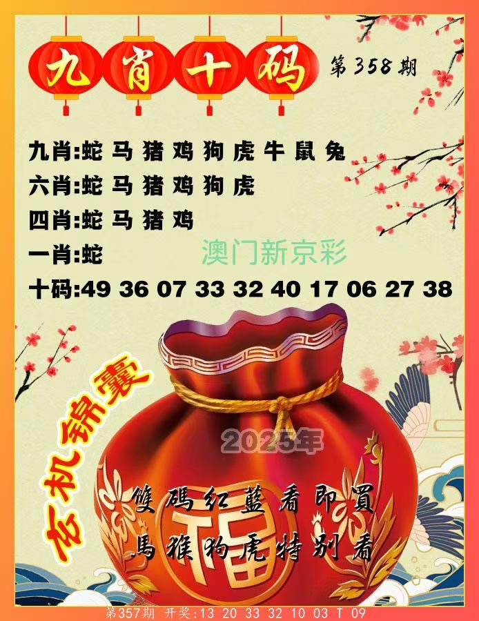 2025357期:【龙38.狗32.蛇25.鸡45.羊47】开09鸡对 |