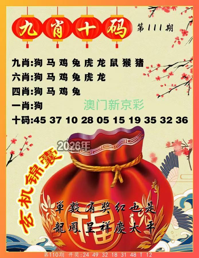 2026111期:【猴47.鸡46.羊48.猪44.马01】开09狗错 |